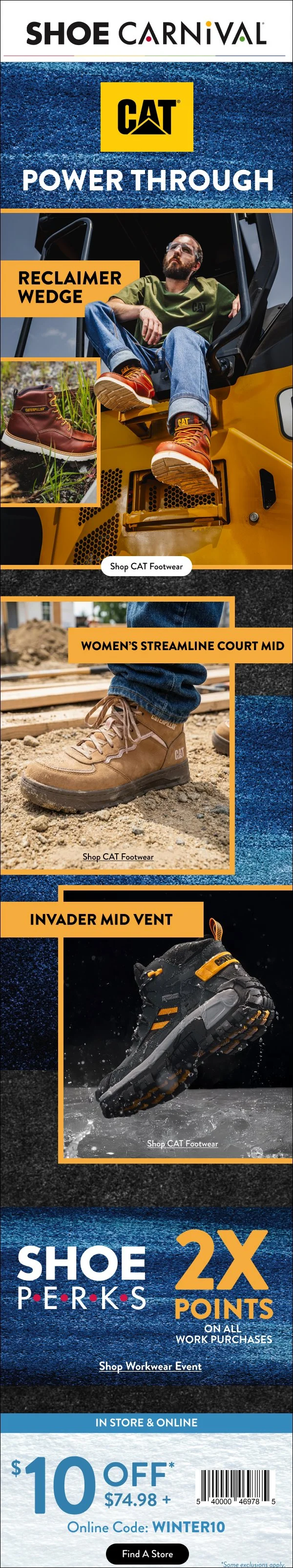 Much of the day to day at Shoe Carnival/Shoe Station was creating digital email layouts for E-Commerce. These design pieces include various product features and sales of shoes and accessories displayed in a way to tell a cohesive story and sales messaging. All of these emails are build in Figma, but supplementary tools include Photoshop, After Effects, assistance from our photography team, and generative AI tools such as Gemini and Midjourney. These emails are created in a pretty high volume so every project is a practice in adaptability and mastery of the tools.